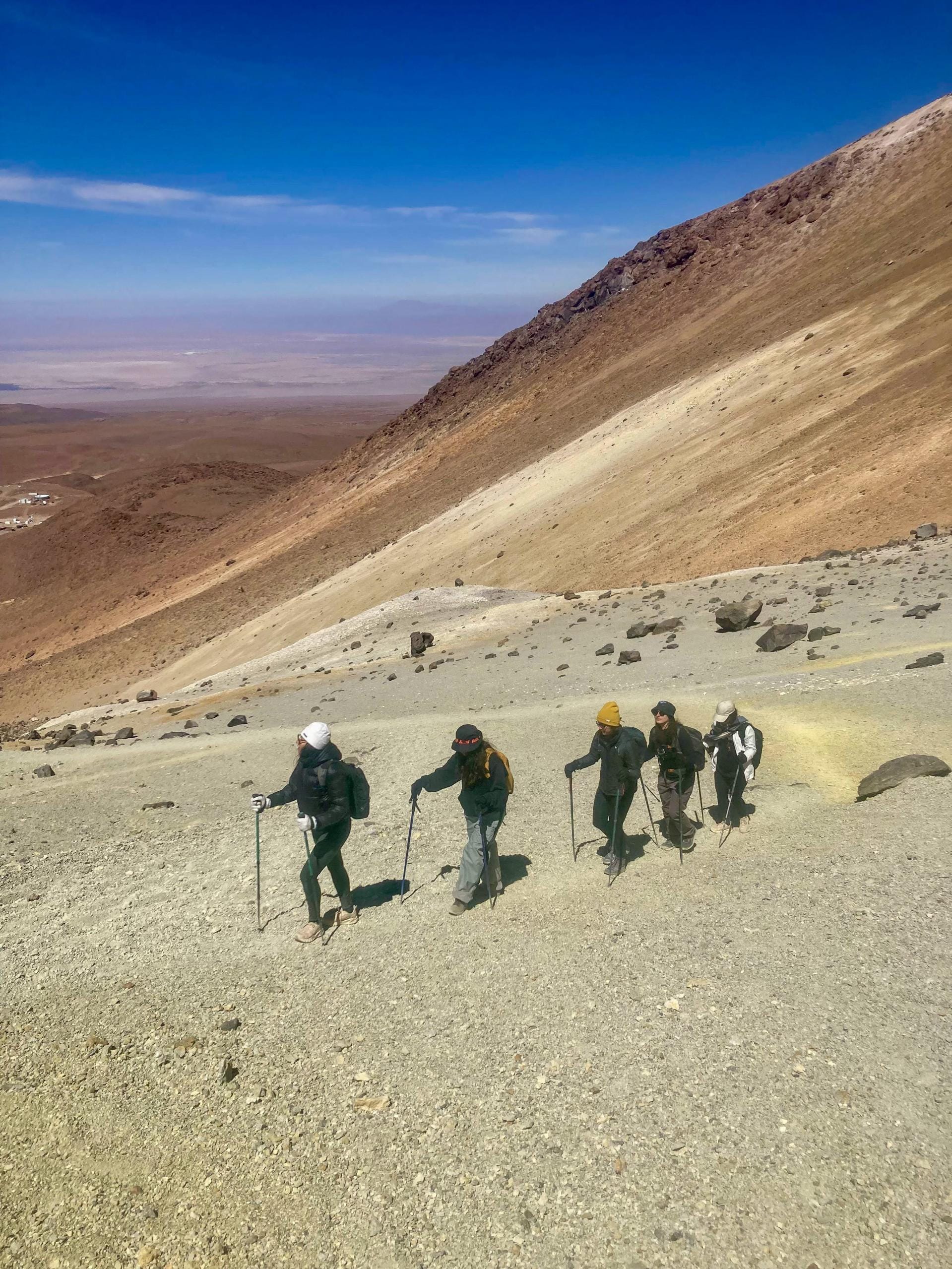 Saída do seu hotel em San Pedro de Atacama. Toco vem do idioma indígena kunza, Toco ou Tocko significa "pedra". O Vulcão Cerro Toco é um antigo vulcão próximo à fronteira entre o Chile e a Bolívia que hoje está adormecido. Reconhece-se o Cerro por ser facilmente acessível e por ser o mais próximo de San Pedro de Atacama (60 quilômetros a sudeste). Está localizado ao sul dos tutelares do vulcão Licancabur e do vulcão Juriques e tem uma grande vista panorâmica destes, além da vista da Laguna Blanca na Bolívia e do observatório Alma. Há 20 anos, em sua base, uma quantidade de enxofre foi extraída como objetivo de ser usada para extrair cobre na mina de Chuquicamata, como explosivo. Ainda restam alguns vestígios da antiga mina. Retorno ao seu hotel em San Pedro de Atacama.