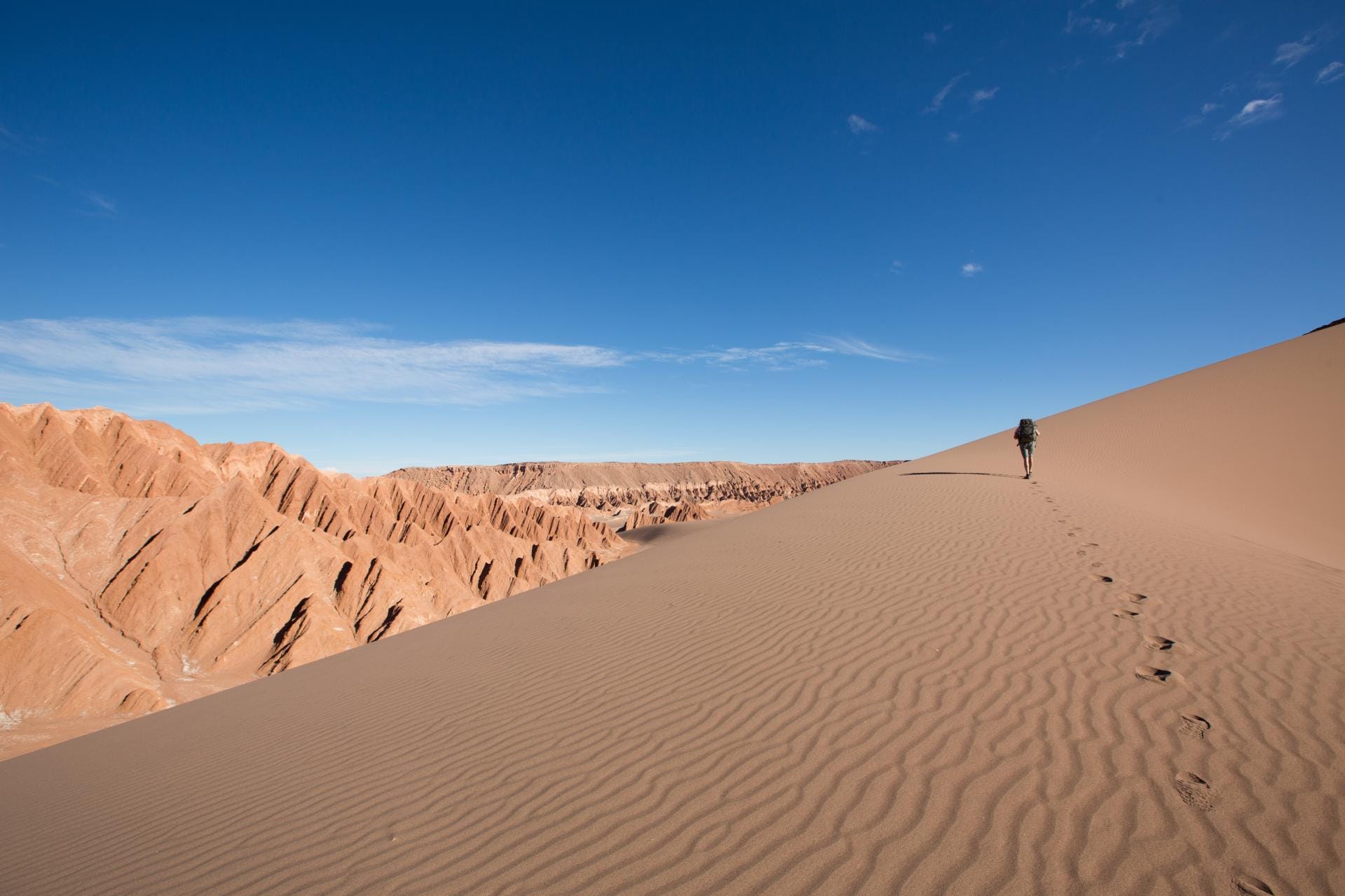 Localizado no Norte do Chile, com mais de 1.000 km de extensão, o Deserto do Atacama é considerado o deserto mais alto do planeta e também uma das regiões mais secas que existem. Chega a ser considerado Marte na Terra, devido as condições climáticas semelhantes. Sua porta de entrada é a vila de San Pedro do Atacama, ponto de encontro de viajantes do mundo inteiro, que também possui uma vida agitada, mesmo depois da meia noite, com bares e restaurantes lotados e pessoas conversando, planejando o dia seguinte.
