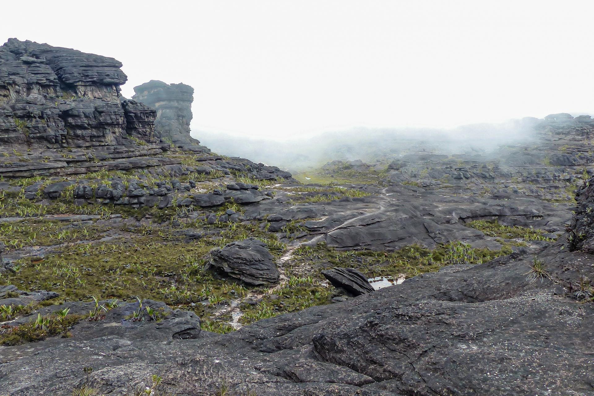 Por mais que se caminhe no topo do MONTE RORAIMA, duas coisas nos deixam inquietos: Que lugar é esse? Suas formas, seus sons, seus silêncios, suas névoas, suas energias, quantas pedras, quanta água, que imensidão é essa que parece ter parado no tempo? Quanto mais se anda, mais se tem para descobrir e, na verdade, ainda há muitos lugares no topo que sequer foram pisados pelo homem.