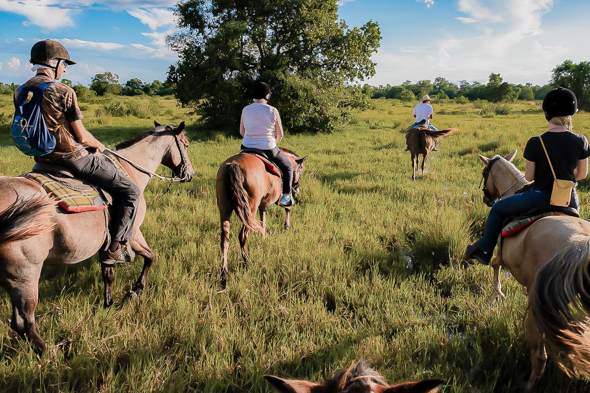- Passeio a cavalo: Todos os passeios realizados passam por paisagens únicas, mas é o cavalo uma das principais atrações da Pousada Aguapé, pois é a melhor maneira de se conhecer o pantanal. Cavalgando por seus campos abertos, brejos, caápões, cordilheiras, corixos e baias, nos deparamos com uma rica variedade de flora e exuberante fauna, típicas de uma região bem preservada. Os cavalos são tranqüilos, o que faz com que mesmo quem nunca andou a cavalo possa fazer este passeio. Existem diversas trilhas, com percursos mais curtos ou longos, que podem ser feitas tanto nas cheias como na seca, sempre com acompanhamento de experientes guias locais.